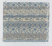 Tsujigahana Textile with Horizontal Stripes, Flowering Plants, Fans, Snowflakes, Clouds, and Bellflowers