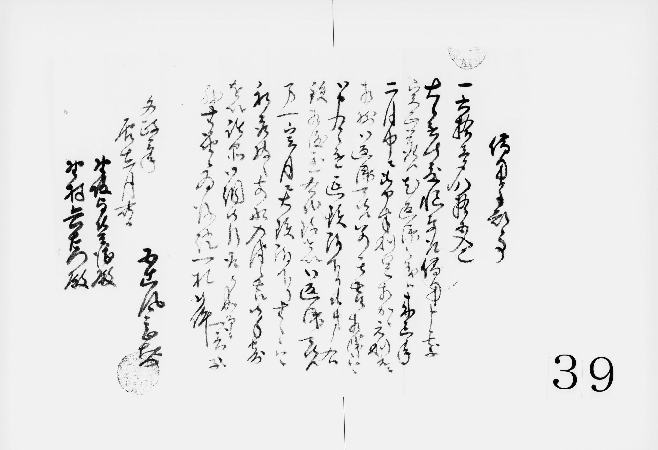 書状(病死の旨につき)
