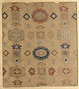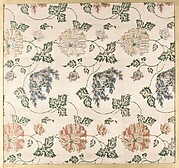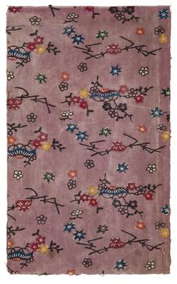 Purple-ground fragment with florals and kakuregasa motif
