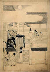 Illustration of a scene in Lavender (Wakamurasaki), Chapter Five of The Tale of Genji