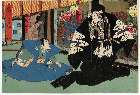 Onoe Kikugorō IV as Chūmanji-ya Tamagiku, Bandō Hikosaburō V as Inaki Shinnojō, Ichikawa Kodanji IV as Chūmanji-ya Yahee in the Kabuki play 'Ami moyō Tōrō no Kikukiri'