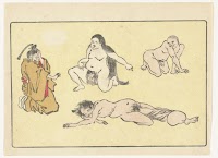 Old Priest and a Monkey, series Comparing Flowers (はなくらべ)