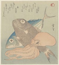 Stilleven van tonijn, karper en inktvis