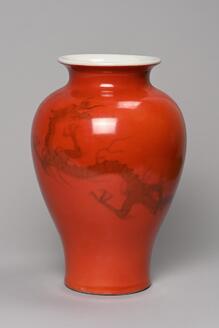 紅釉黒花龍文瓶