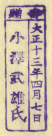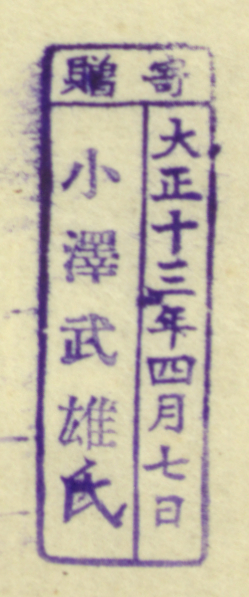 寄贈/大正十三年四月七日 小沢武雄氏