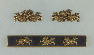 Set of Two Sword Fittings: Menuki and Kozuka, Design of three lions