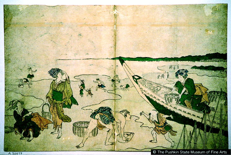 Sanjuurokkasen Bunka Era Women Gathering Shells at Low Tide