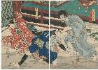 Nakamura Utaemon IV as the ghost of Takechi Samanosuke (a, right panel); and Nakamura Tamashichi I as Sutewakamaru (b, left panel)