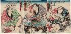 Bando Shuka as Kuzunoha hime, Ichikawa Danjuro VIII as Abe no Yasuna and Ichikawa Kodanji IV as Yakko Yokanpei (Object)