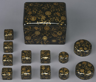 12-tiered box with design of scattered lupin crests and karakusa