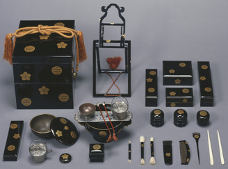 Tea utensil box with design of assorted precious objects