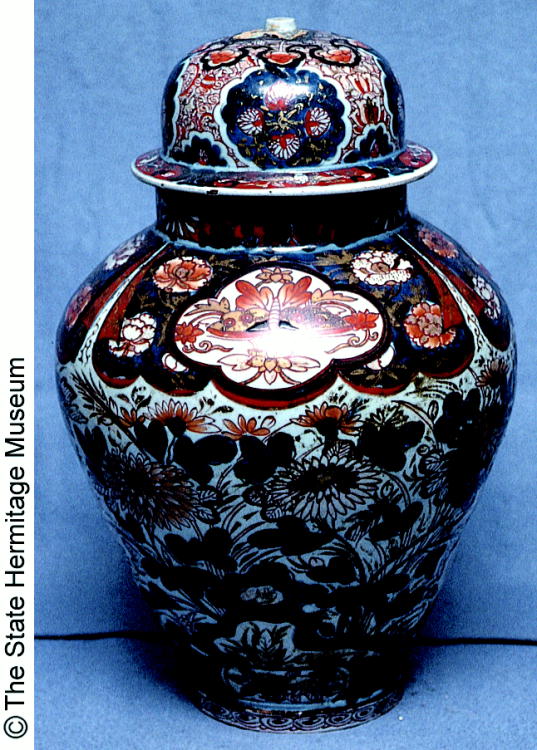 Covered jar with design of chrysanthemums