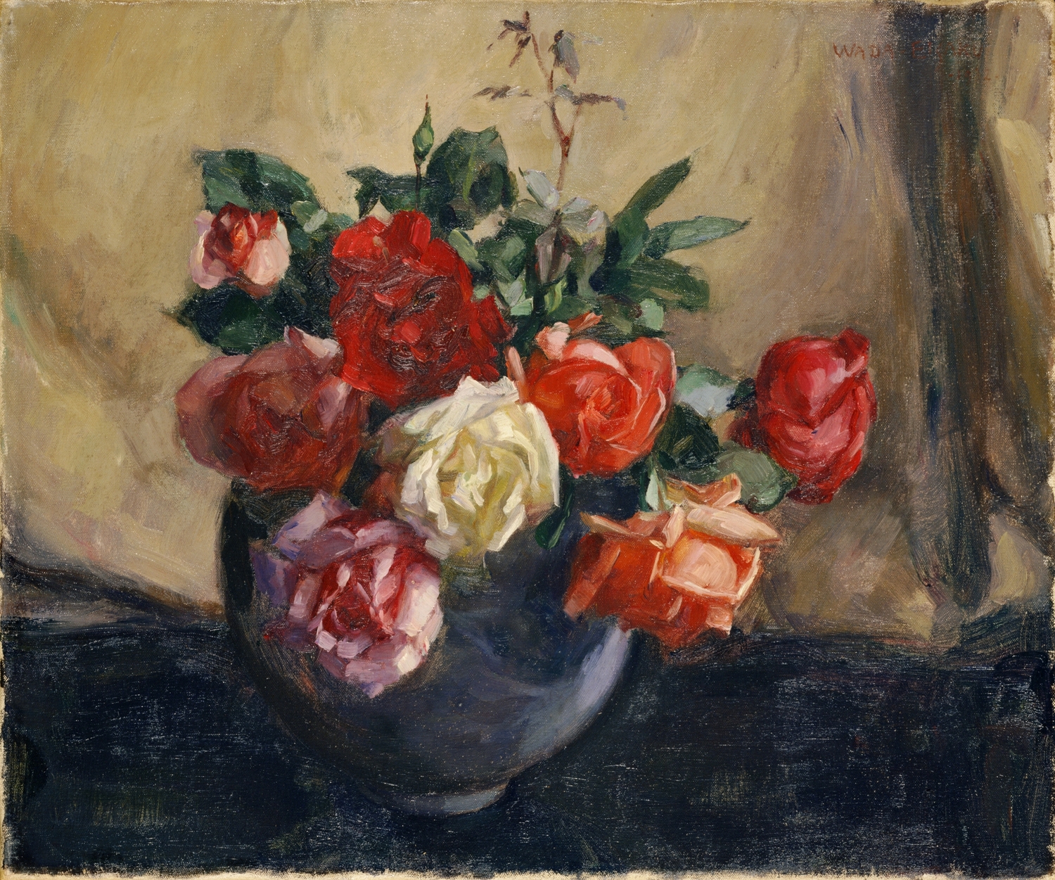 Roses and the Bronze Figurine by Renoir