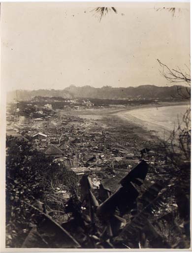 関東大震災 霊山ヶ崎より見た由比ヶ浜海嘯のあと