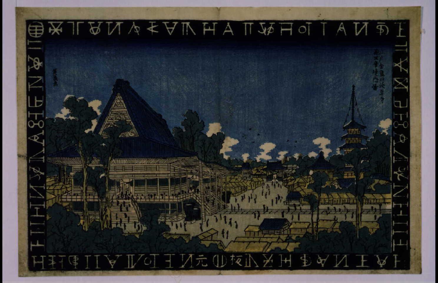 Famous Places in Edo Framed with Dutch : The Precincts of Kinryuzan Sensoji Temple Dedicated to a Goddess of Mercy, Edo
