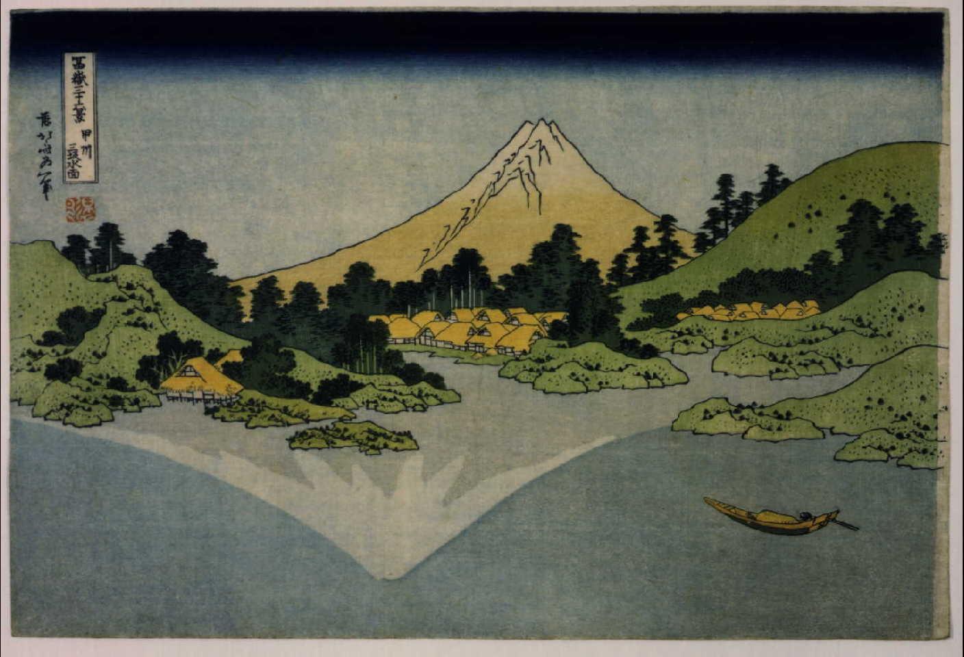 Reflection in Lake at Misaka in Kai Province (Kōshū Misaka suimen), from the series Thirty-six Views of Mount Fuji (Fugaku sanjūrokkei)