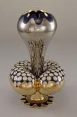 Vase, gold and silver designs on a dark blue ground