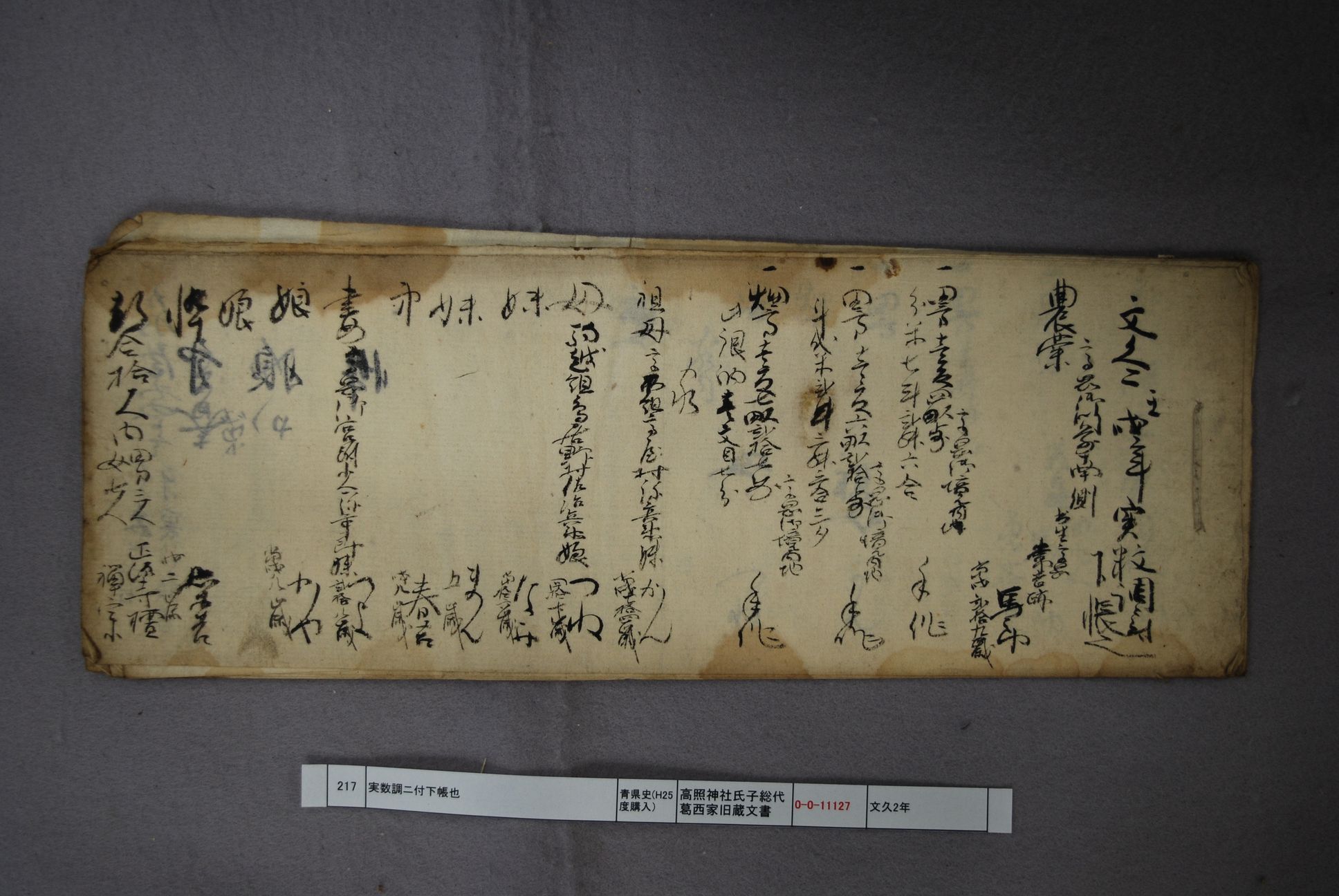 実数調ニ付下帳也