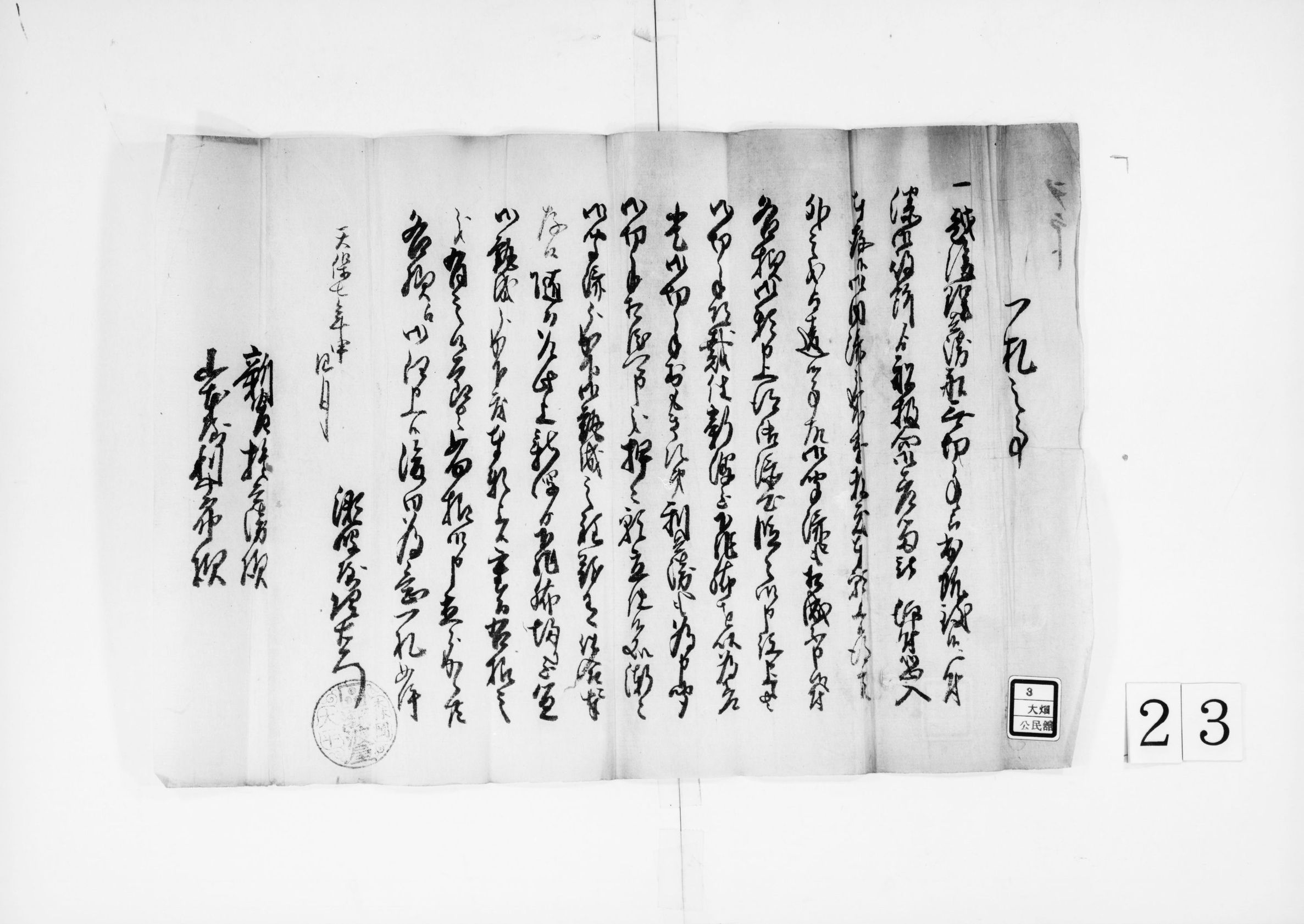 書状(身辺の様子を知らせたものか)