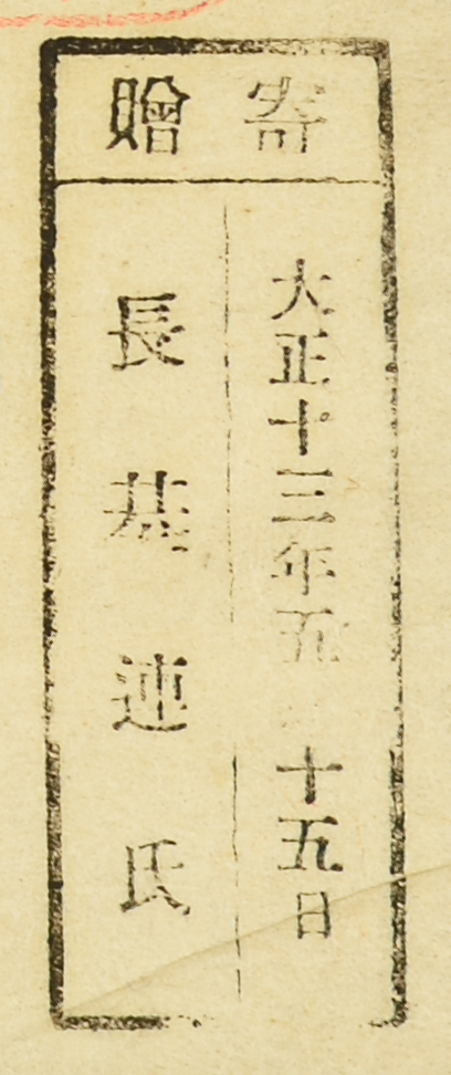 寄贈/大正十三年五月十五日 長基連氏