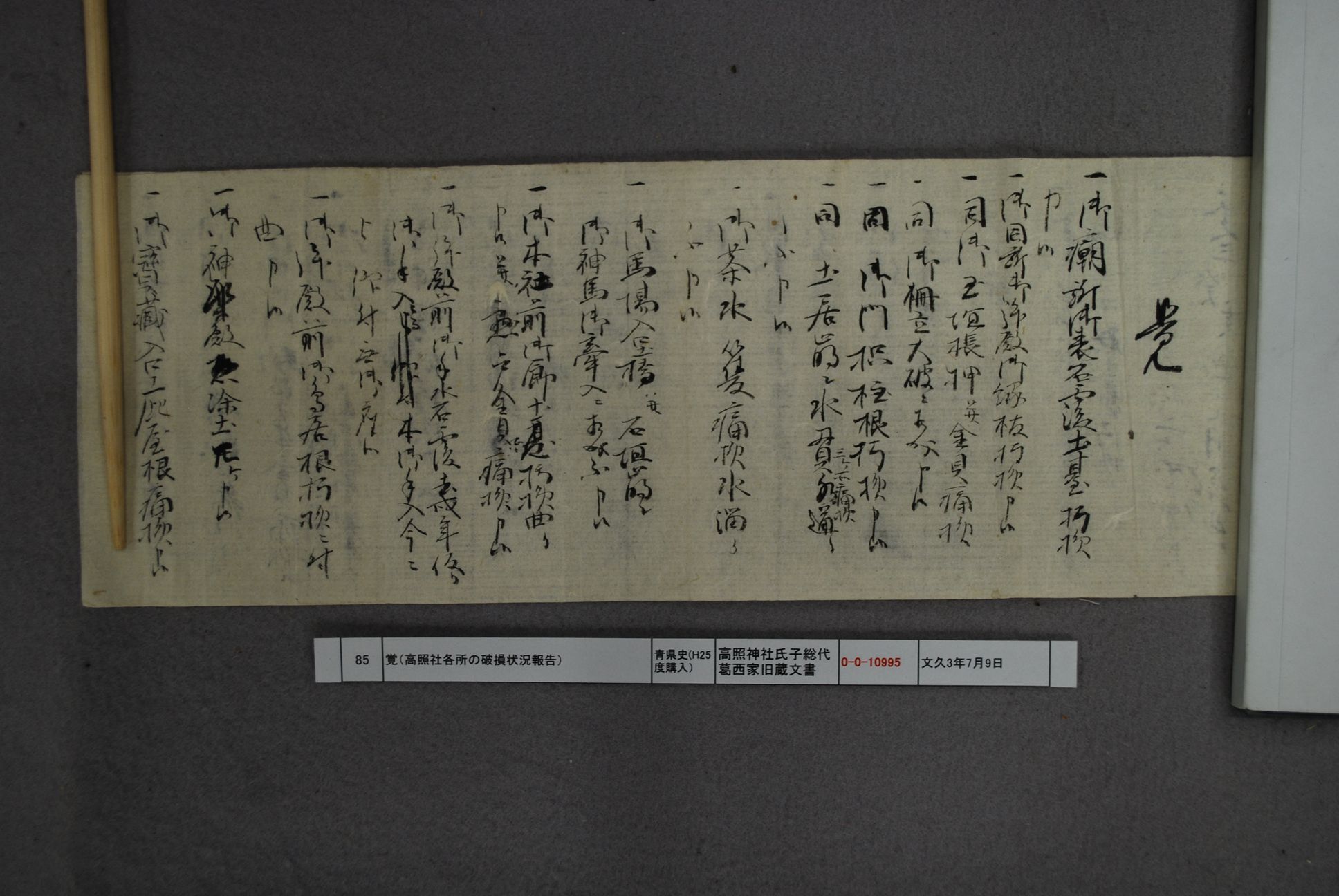 覚(高照社各所の破損状況報告)