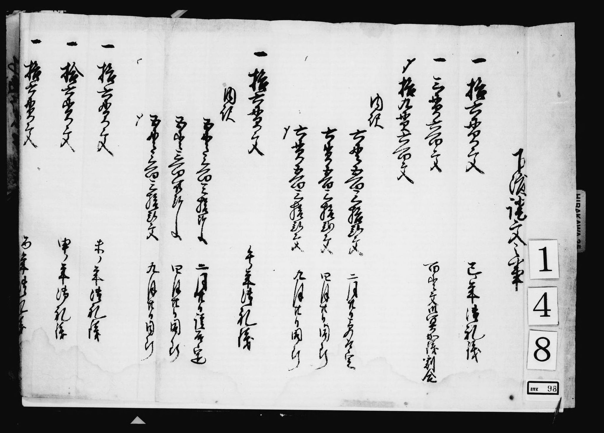 下渡証文之事(田名部海辺濁酒一手請負に付)