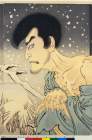 Snow, Moon and Flowers (Setsu Getsu ka ) : Moon, the Actor Ichikawai Sansho in the Pole of Kezori Kuemon ( Triptych )