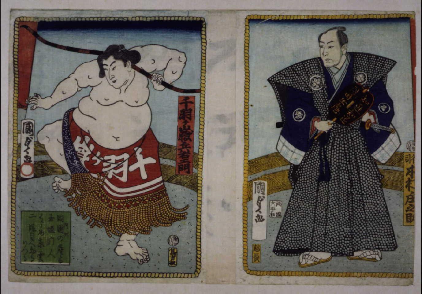 Sumo Wrestlers of the Western Group: (right) Kashiwado Kandayu from Edo, (left) and Inagawa Masaemon from Osaka