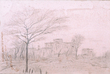Great Kanto Earthquake sketches: View of Surugadai from Ochanomizu, Tokyo