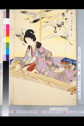 「千代田の大奥琴」 「千代田の大奥(月見の宴)(三枚続)」