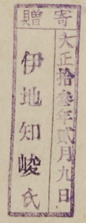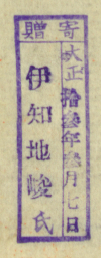 寄贈/大正 年 月 日 伊知地峻氏