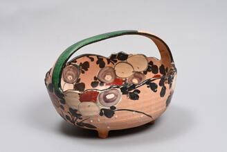 Handled Bowl with Chrysanthemums