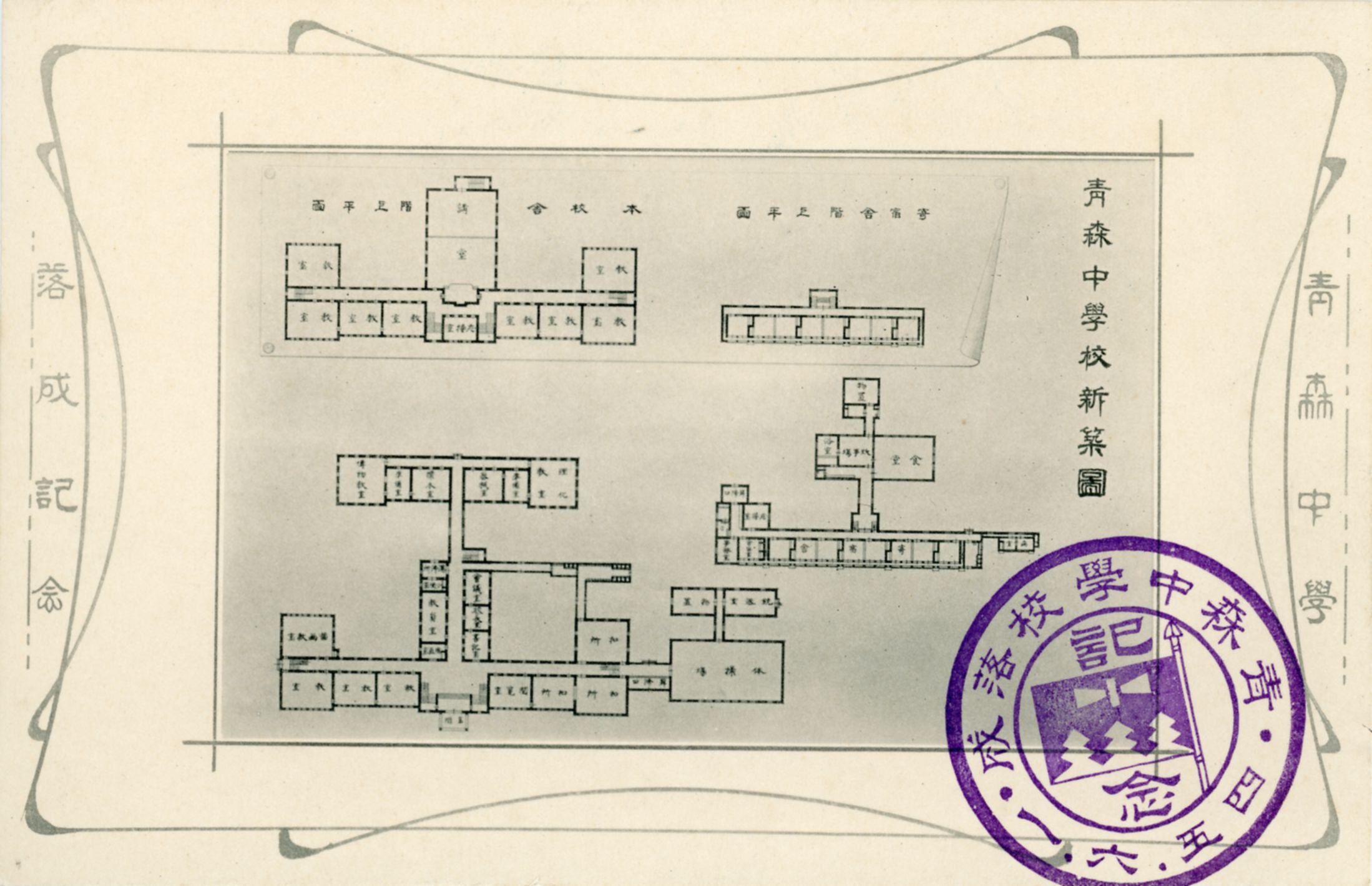 絵ハガキ(青森中学校落成)
