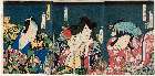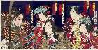 「鳴海城五郎」 「尾上菊四郎」「佐々木丹右衛門」「市川久藏/下部友平」「坂東彦三郎」「馬士大谷万作/おゆき」「中村大吉」「お袖」「岩井杜若」