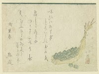 “Desk with Writing Set and Plum Flowers,” from the series Ise Calendars for the Asakusa Group (Asakusa-gawa Ise goyomi)From the Spring Rain Collection (Harusame shū), vol. 2