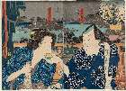 Seki Sanjuro as Obiya Choemon and Ichikawa Denzo as Ohan of the Shinonoya from the Kabuki Drama Katsuragawa renri no shigarami (Love Suicide of Ohan and Choemon at the Katsura River)