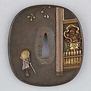 Sword Guard (<i>Tsuba</i>) Depicting Hanshan and Shide (寒山拾得図鐔)