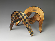 Box for Square Calligraphy Paper (shikishi-bako) with a Bugaku Helmet on Checkered Ground