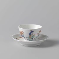Cup and saucer with design of chickens