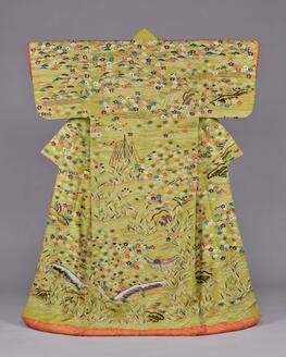 Outer Robe (Uchikake) with Mandarin Oranges and Folded-Paper Butterflies