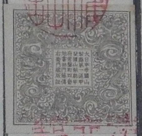 大日本帝国山梨県第一区甲斐国山梨郡甲府常盤町四番地書林内藤伝右衛門蔵版証