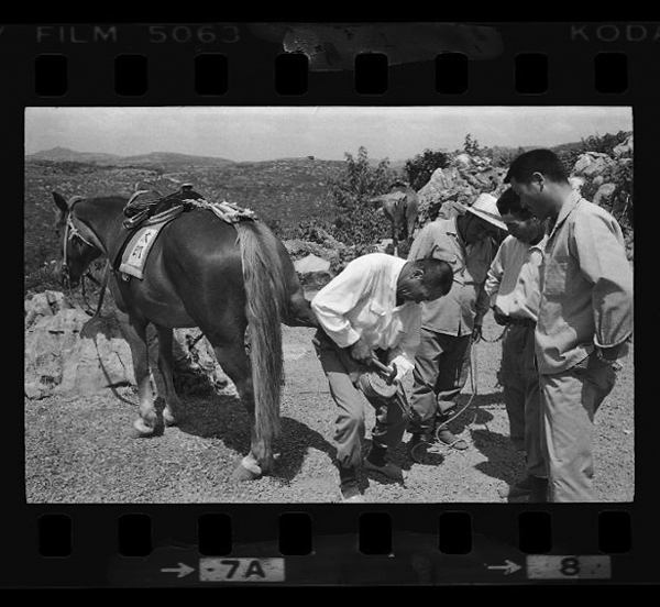 Japan. Touristen der Hapag zu Pferd mit Einheimischen in Bergwelt