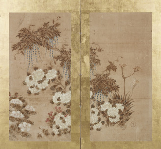 四季花卉図(二曲屏風)