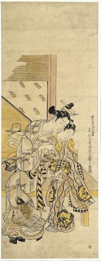 Courtisane fluisterend tegen haar kamuro