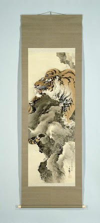 Hangrolschildering met een voorstelling van een tijger op een rots