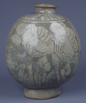 Jar, Buncheong ware with stamped chrysanthemums