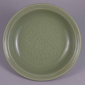 Celadon Dish with Engraved Peonies