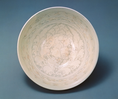 Bowl with Incised Design of Peony,White Slip