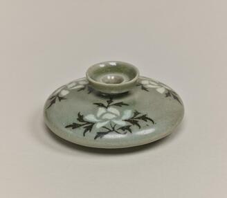 Celadon Incense Container with Inlaid Design of Peonies and Cranes