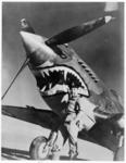 Royal Air Force aeroplane with painted shark jaws, and airman